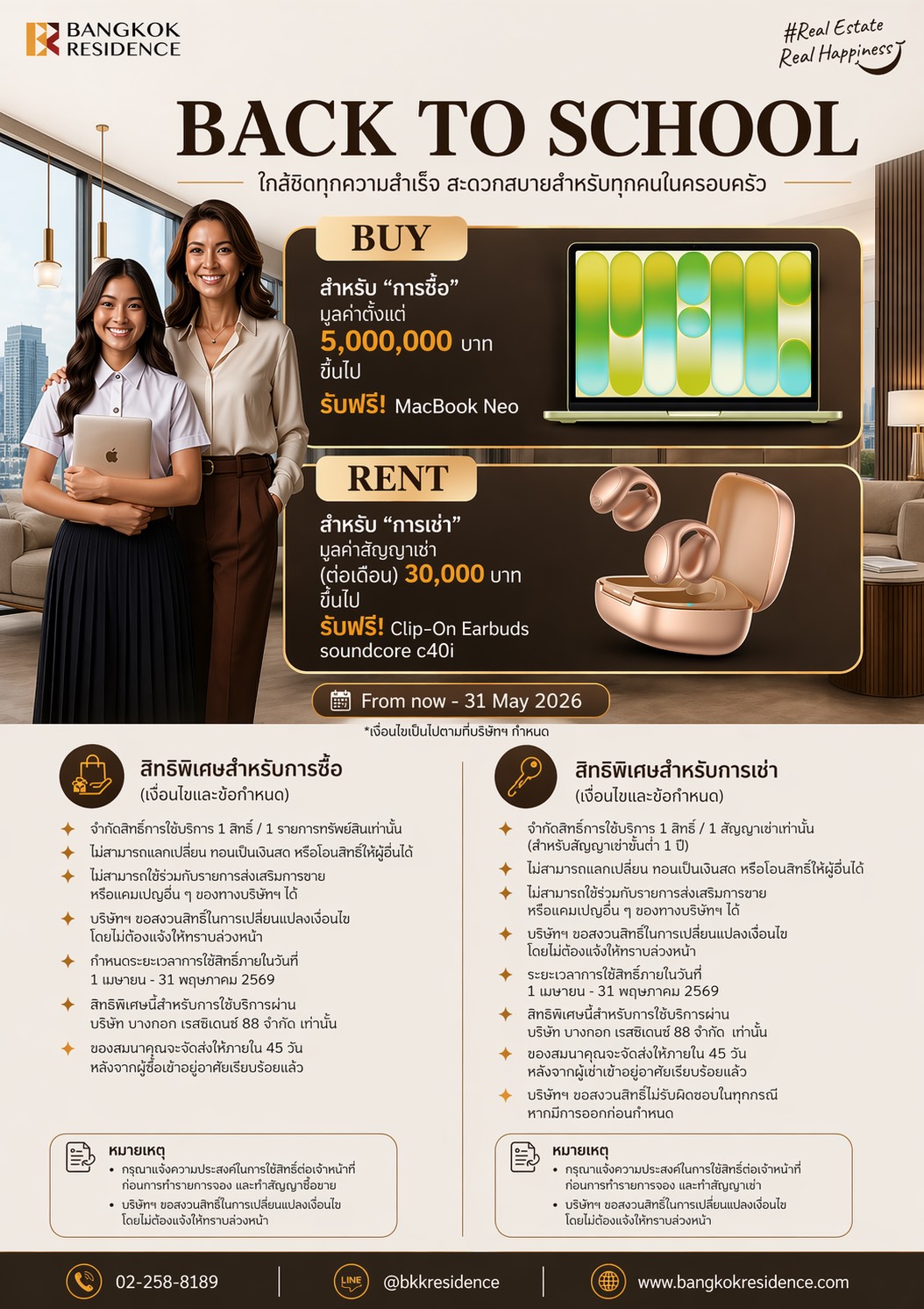 3 discount per BR in collaboration with Udee Design to celebrate the opening of a new project site, offering special privileges for The Bangkok Residence customers buying a condo at Q Asok.