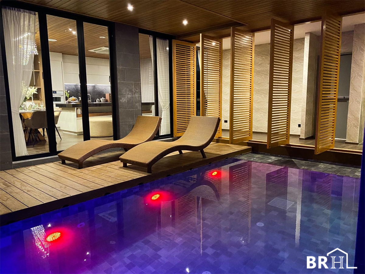 Size: 5 bedrooms, 7 bathrooms, 4 parking spaces, Jacuzzi tub, built-in kitchen, private swimming pool on the 2nd floor.