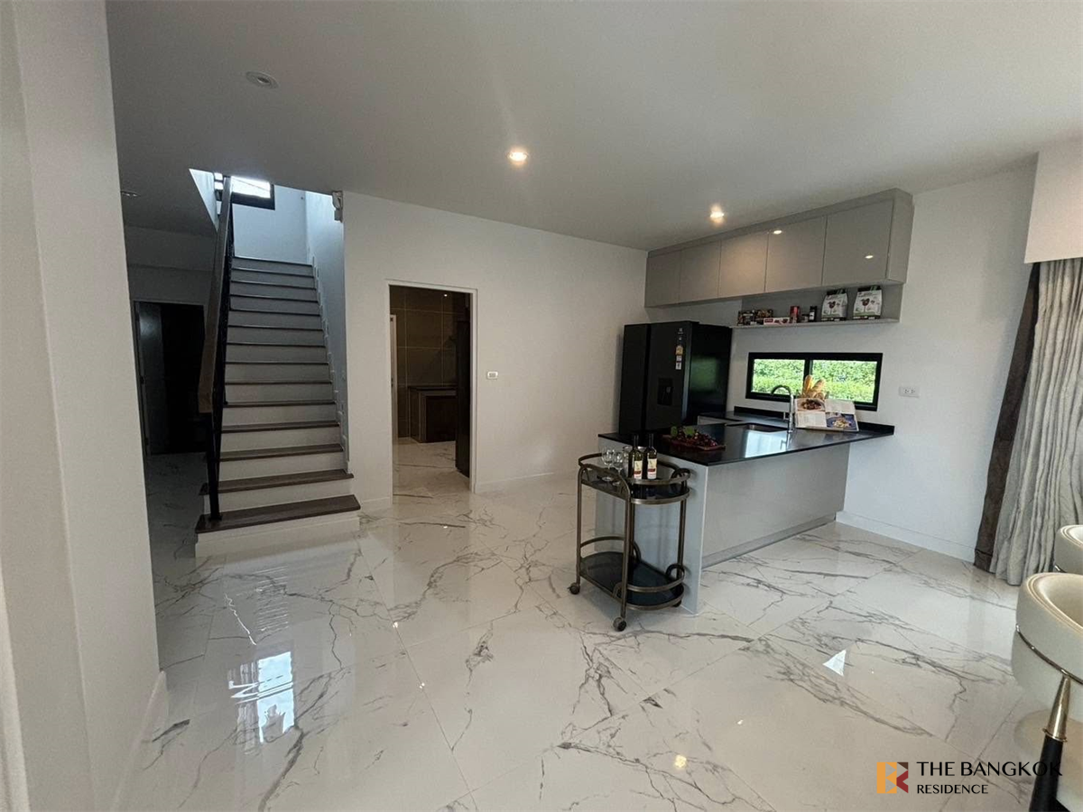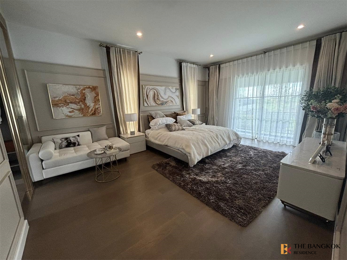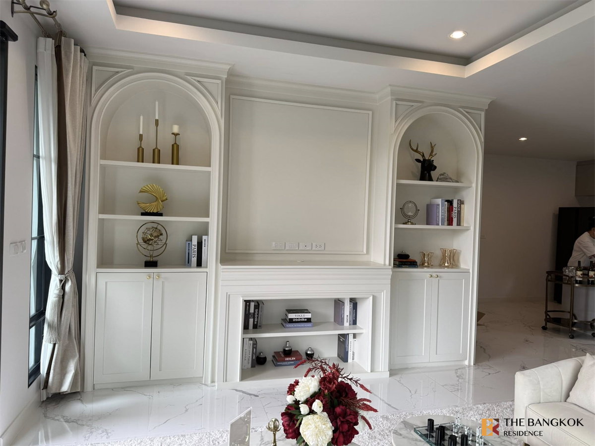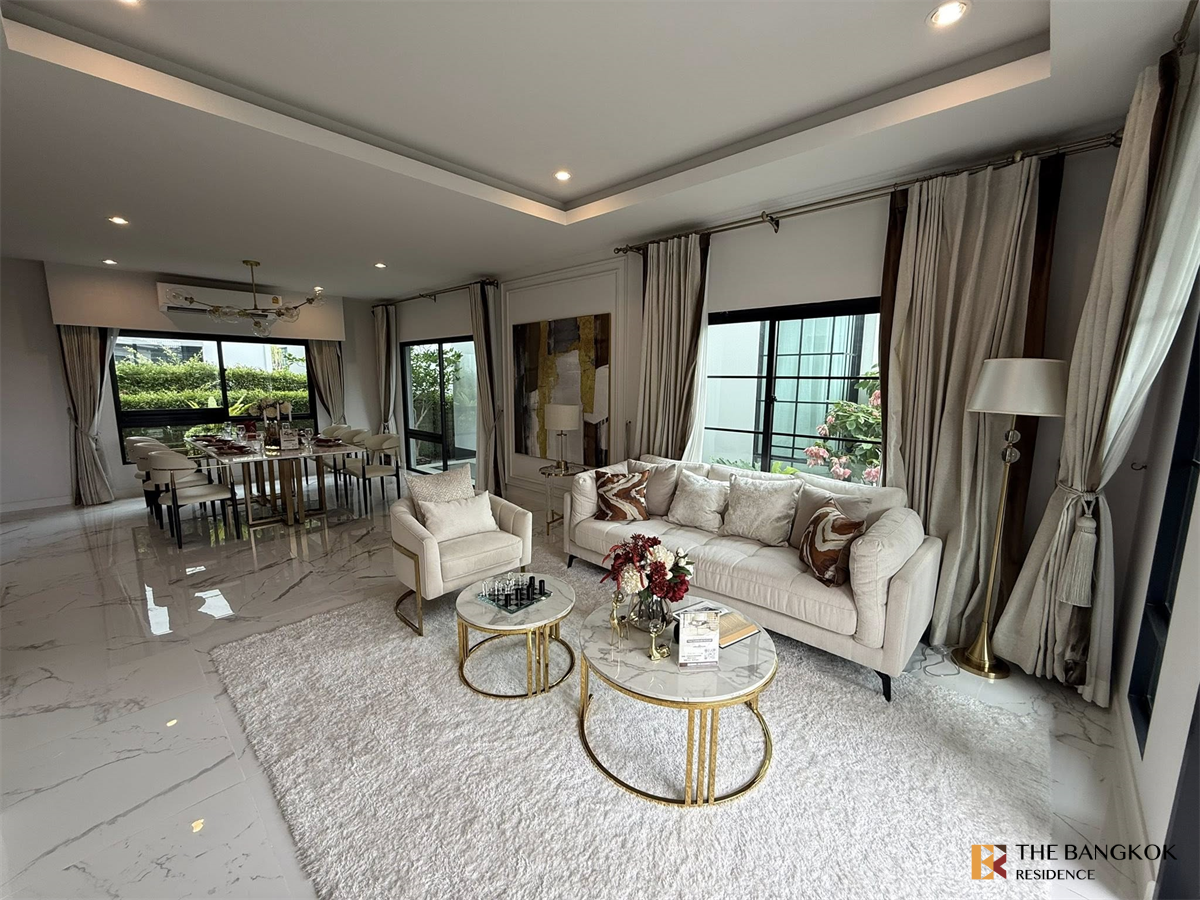 2-story detached house project, Modern Classic style, emphasizing luxury. and details in choosing materials for both the central part and the house. Surrounded by complete facilities, near IMPACT Muang Thong Thani, BFS School, St. Francis Xavier School, Sacred Heart Donmuang School, Robinson Srisamarn, Test. Ko Lotus, Central Chaengwattana, Royal Thai Army Communications Department and Chaengwattana Government Center.