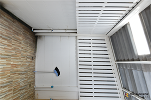 3-story townhome, Baan Klang Muang Kanlapaphruek, Soi Kamnan Maen, on the main road of the village. Makes driving out of the house easier and more comfortable than staying in the alley. The parking area is longer than along the alley. The front of the house is 4.5 meters wide, able to park 1 car, but the space is long enough to park a large 7-seat car like a Fortuner Pajero comfortably. and can easily close the gate.