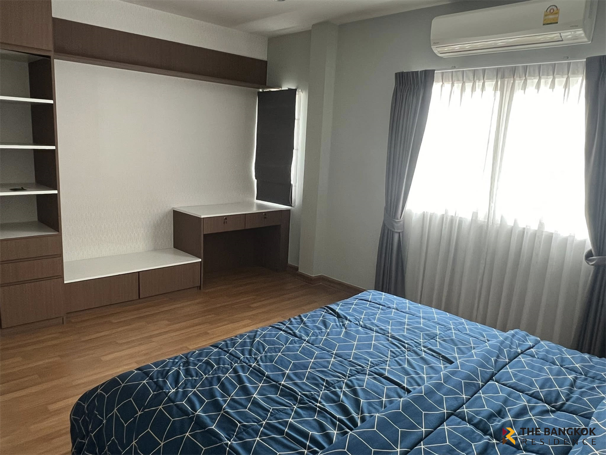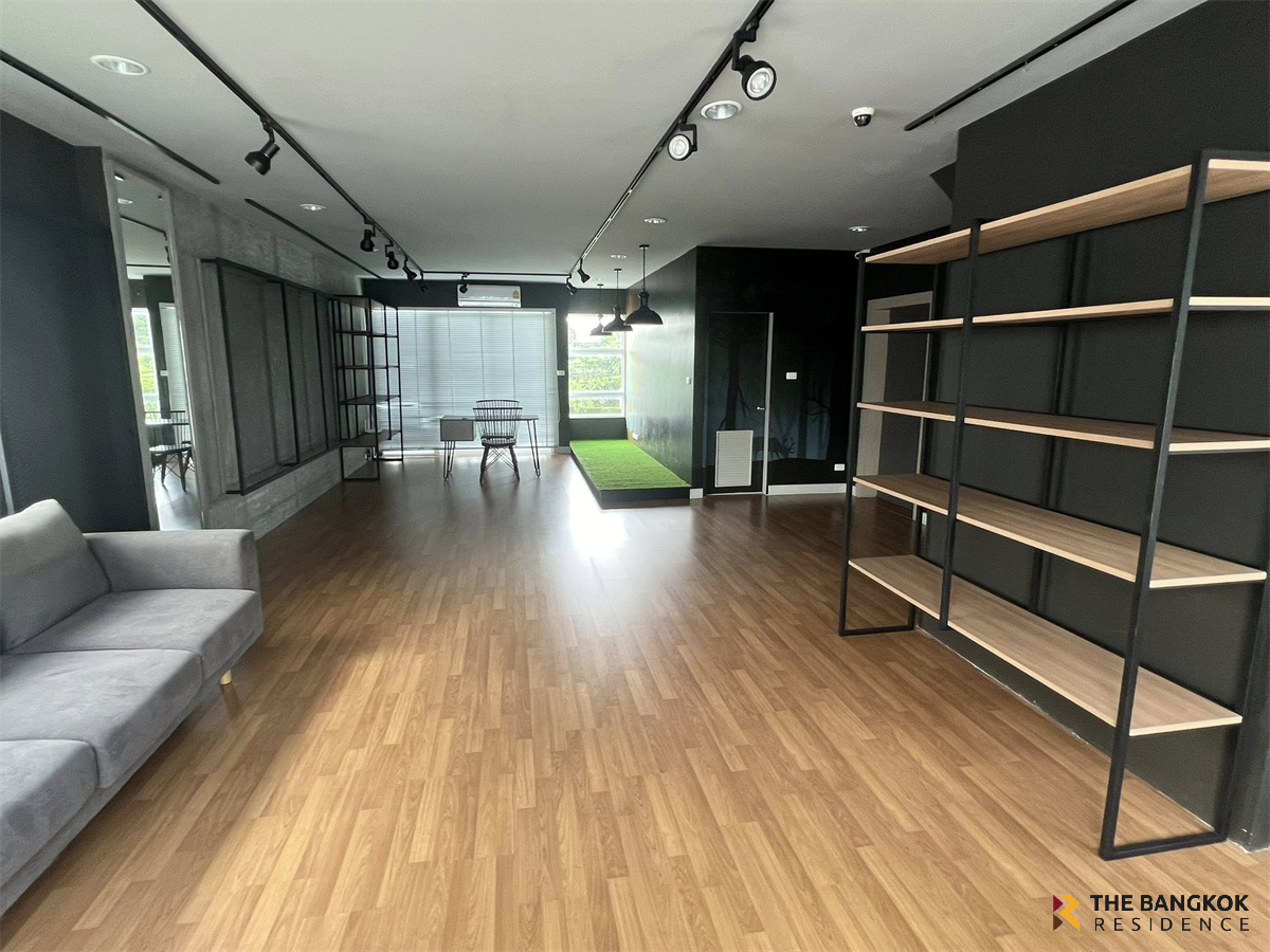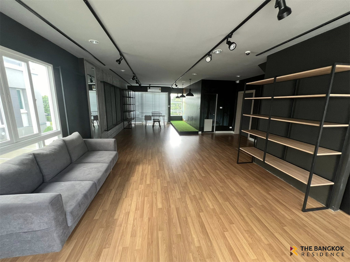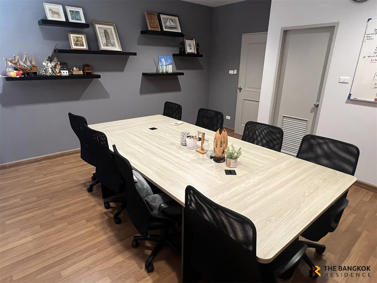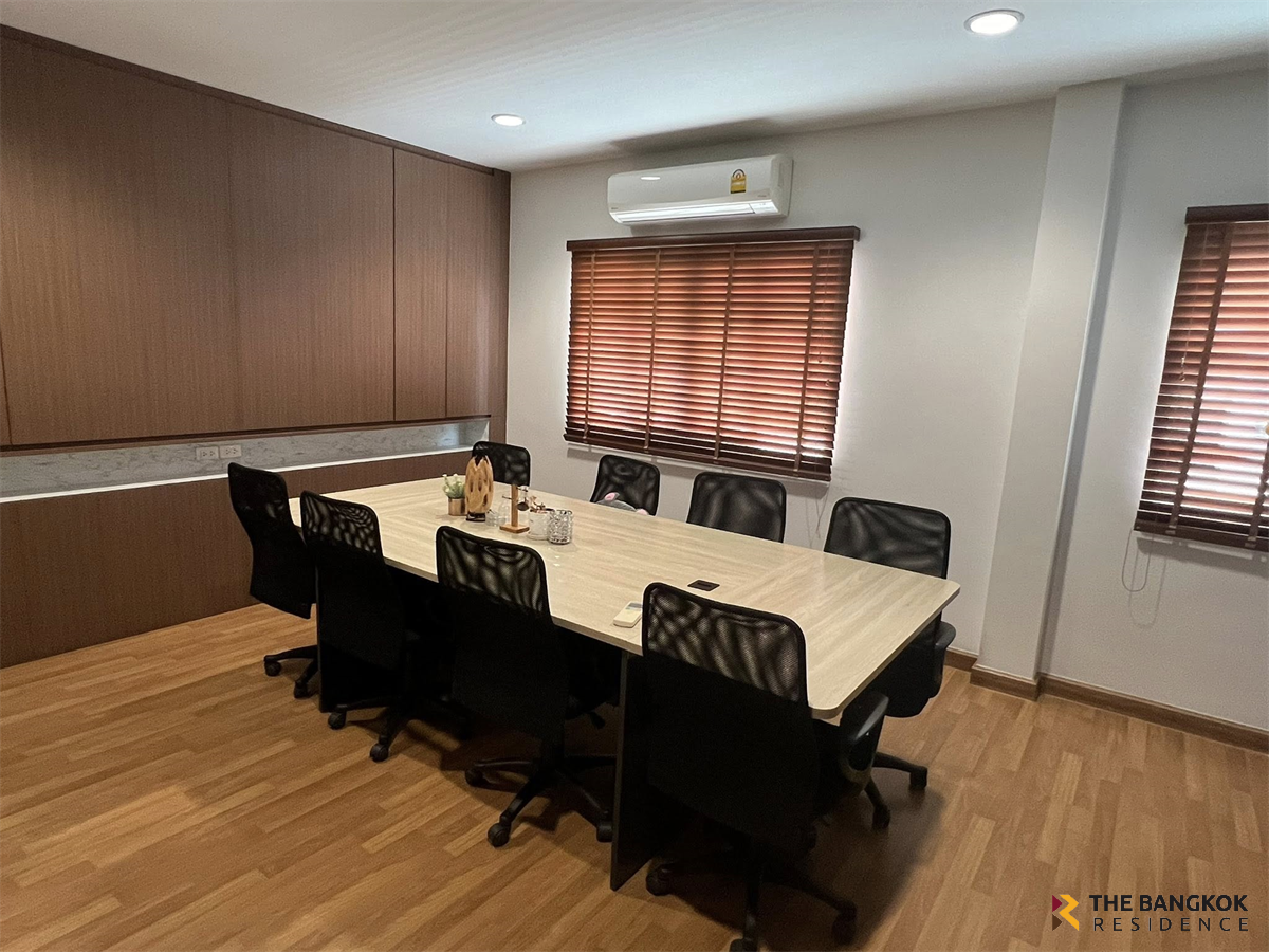 For rent: Semi-detached home office in prime location at Chuan Chuen Modus Village, Vibhavadi. Rent reduced from 150,000 baht to 120,000 baht. Selling price for 2 houses: 30 million baht. Located on the main road inbound Vibhavadi, on the same side as Jae Leng, Don Mueang. Measuring 100 sq m, the house offers 500 sq m of usable space, 3 floors, 6 bedrooms, 8 bathrooms, and a work room. There are 9 air conditioners, fully furnished, and storage space. Opposite is a garden with convenient parking. Excellent location near Don Mueang Airport, very convenient to travel. Suitable for an office or living. 📍Coordinates: 13.891283140542386, 100.5859789175319