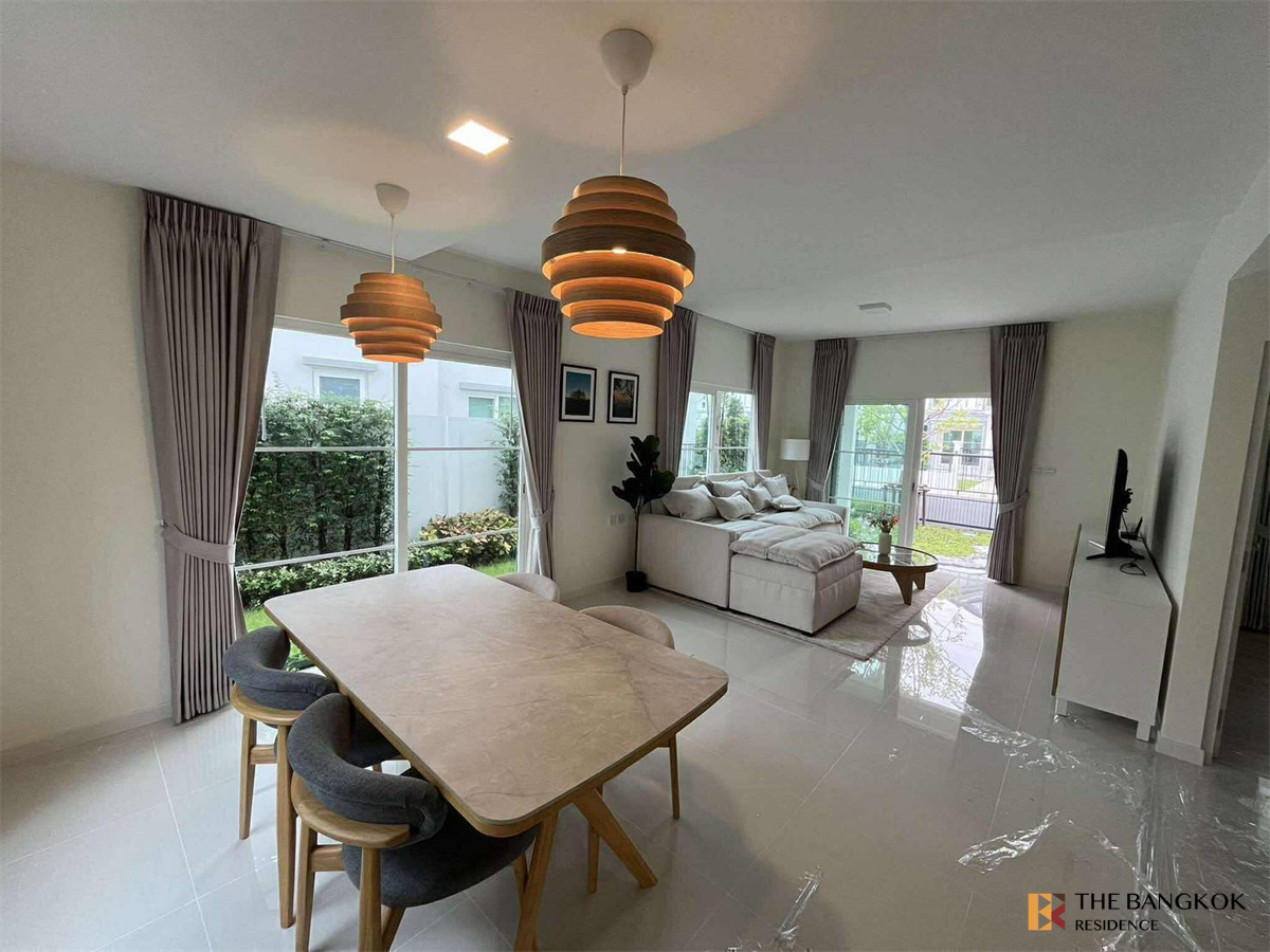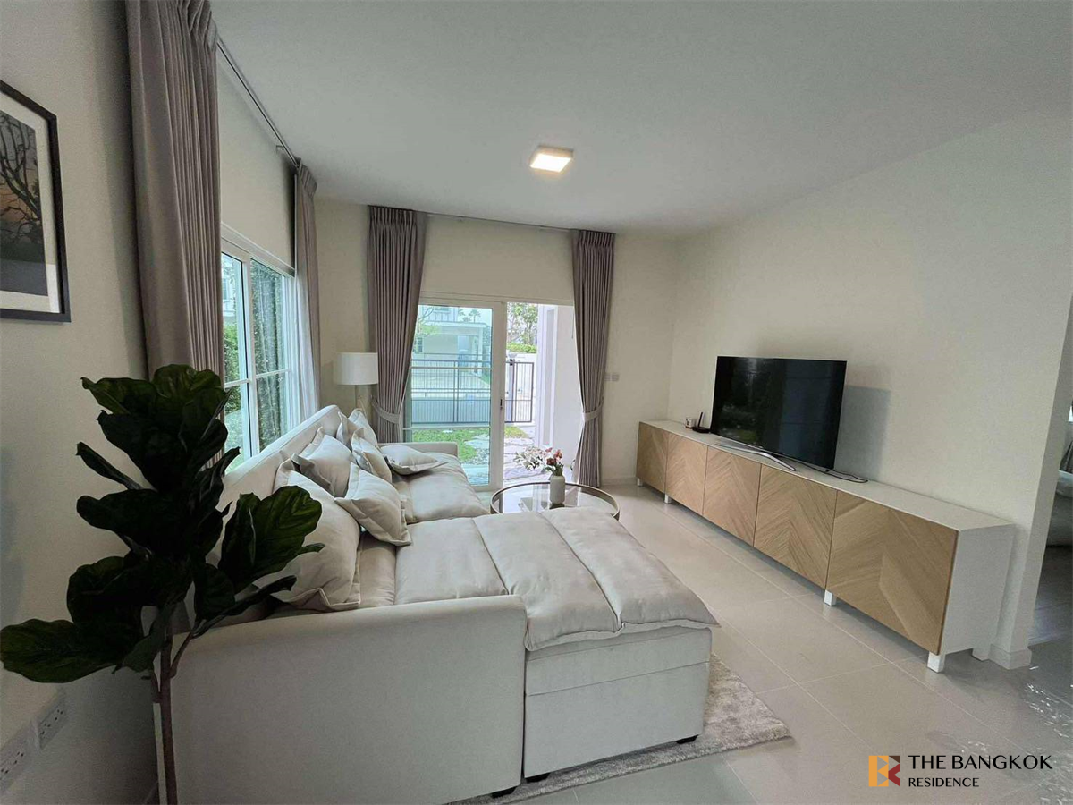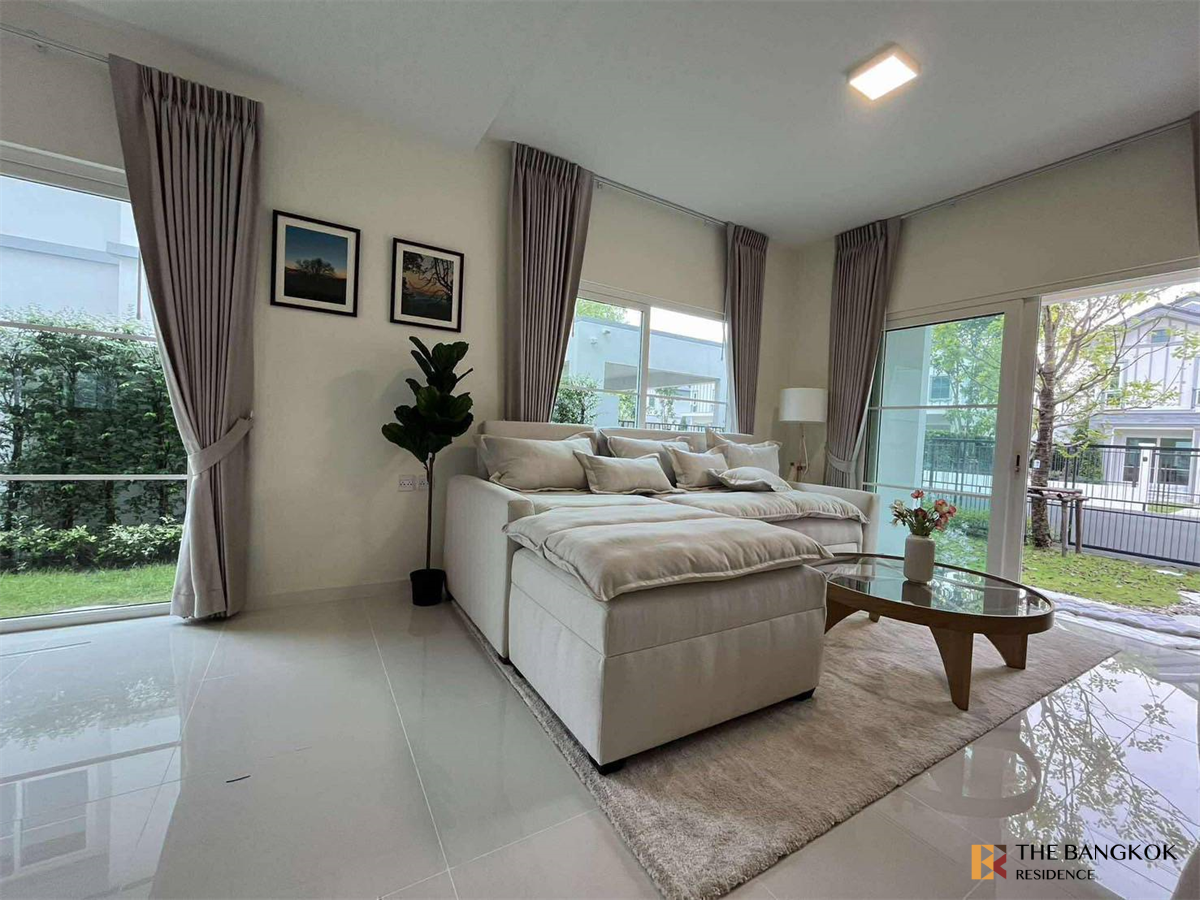 Villaggio 3 Srinakarin-Bangna It is a project of 2-story townhomes and 2-story detached houses located on a project area of approximately 66 rai, with a total of 313 houses. House land starts at 21-52 sq m and up, usable area starts at 122-153 sq m and up. Home functions: 3 bedrooms, 3 bathrooms, 1 multi-purpose room. With parking for 2 cars
