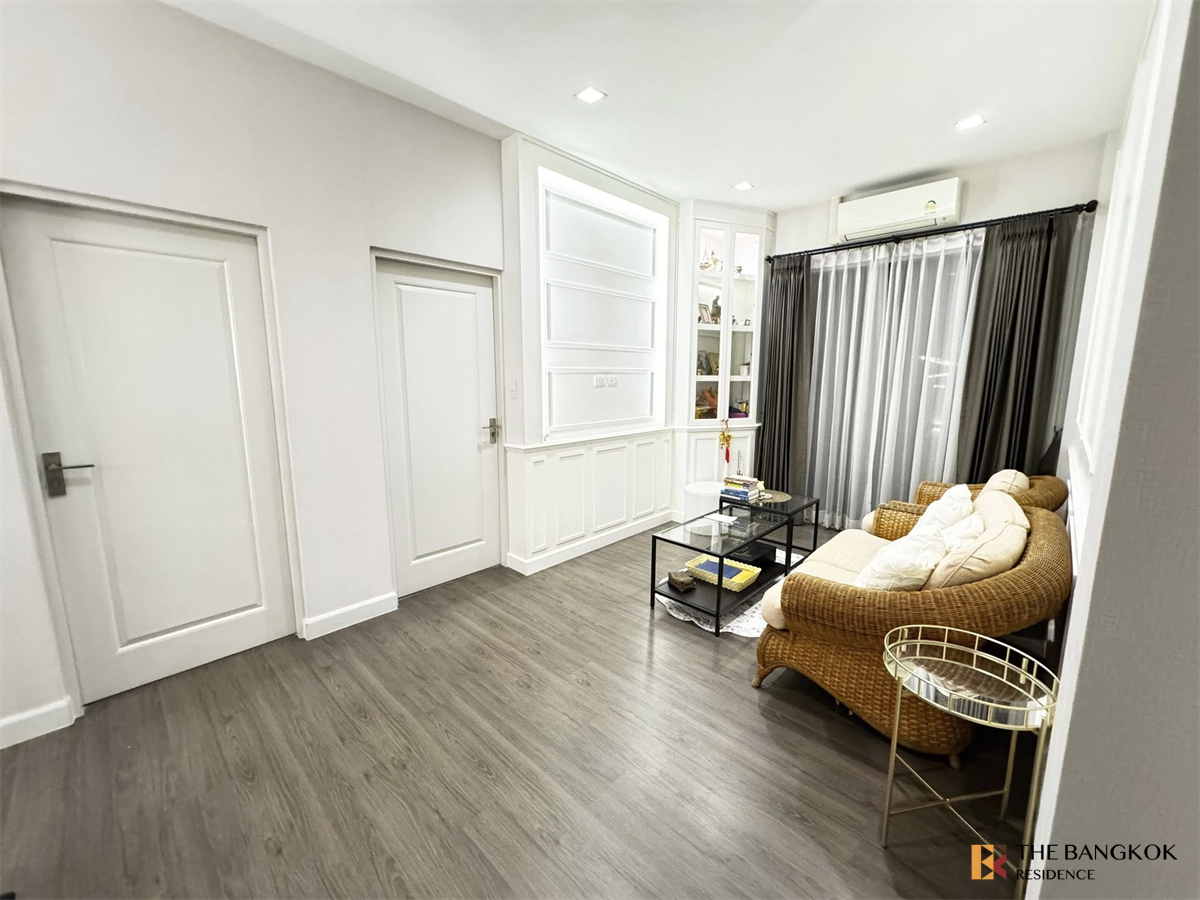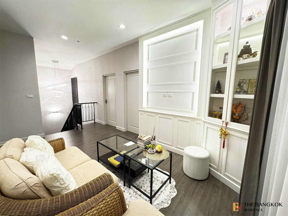 Bangkok Boulevard Rama 9 – Srinakarin, 2-story detached house from SC Asset, located on Krungthep Kreetha Road. Near Krungthep Kreetha Sports Club and Unico Golf Course. Can use the route to the motorway, Ramkhamhaeng Road and Srinakarin Road. What we take you to see is a new phase where the house is in a modern style. There are 3 house styles to choose from, usable area starting at 214 sq m, land starting at 50.7 sq m, at a starting price of 9.99 million baht.