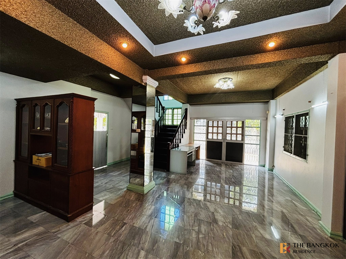A spacious corner house with easy access from two entrances: Chokchai 4 Soi 31/1 and Ladprao Wanghin 24. The property sits on 79 sq.wah of land with a generous living area and a green, peaceful atmosphere—perfect for families.