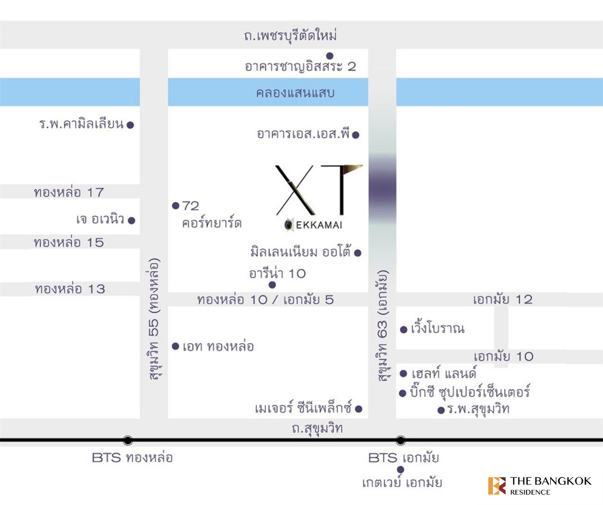 XT Ekkamai (เอ็กซ์ที เอกมัย) เป็นคอนโดมิเนียมที่ถูกพัฒนาโดย แสนสิริ ตั้งอยู่บน 257/2 สุขุมวิท แขวง คลองตันเหนือ เขต วัฒนา กรุงเทพมหานคร 10110 สร้างเสร็จในปี 2020 คอนโดนี้ มีอาคารเดียว จำนวน 38 ชั้น และ รวมทั้งหมด 537 ยูนิต สิ่งอำนวยความสะดวก ลิฟท์ ที่จอดรถ การรักษาความปลอดภัย 24 ชั่วโมง กล้องวงจรปิด สระว่ายนำ้ ห้องเซาว์น่า ฟิตเนส สวนหย่อม / พื้นที่จัดบาร์บีคิว สนามเด็กเล่น / พื้นที่สำหรับเด็ก สถานที่ กราสส์มอล ห่างจากคอนโด 930 เมตร (ขับรถ 5 นาที) ฟู้ดแลนด์ ซูเปอร์มาร์เก็ต (เอท ทองหล่อ ชั้น LG) – 1000 เมตร (ขับรถ 4 นาที) ศูนย์การค้าเดอะดัชเชสพลาซ่า – 1000 เมตร (ขับรถ 7 นาที) เพนนีบัลโคนี – 1.1 กิโลเมตร (ขับรถ 4 นาที) วิลล่ามาร์เก็ต (ทองหล่อ 15) – 1.1 กิโลเมตร (ขับรถ 5 นาที) โรงพยาบาลคามิลเลียน - 1.3 กิโลเมตร สนใจสอบถามเพิ่มเติม