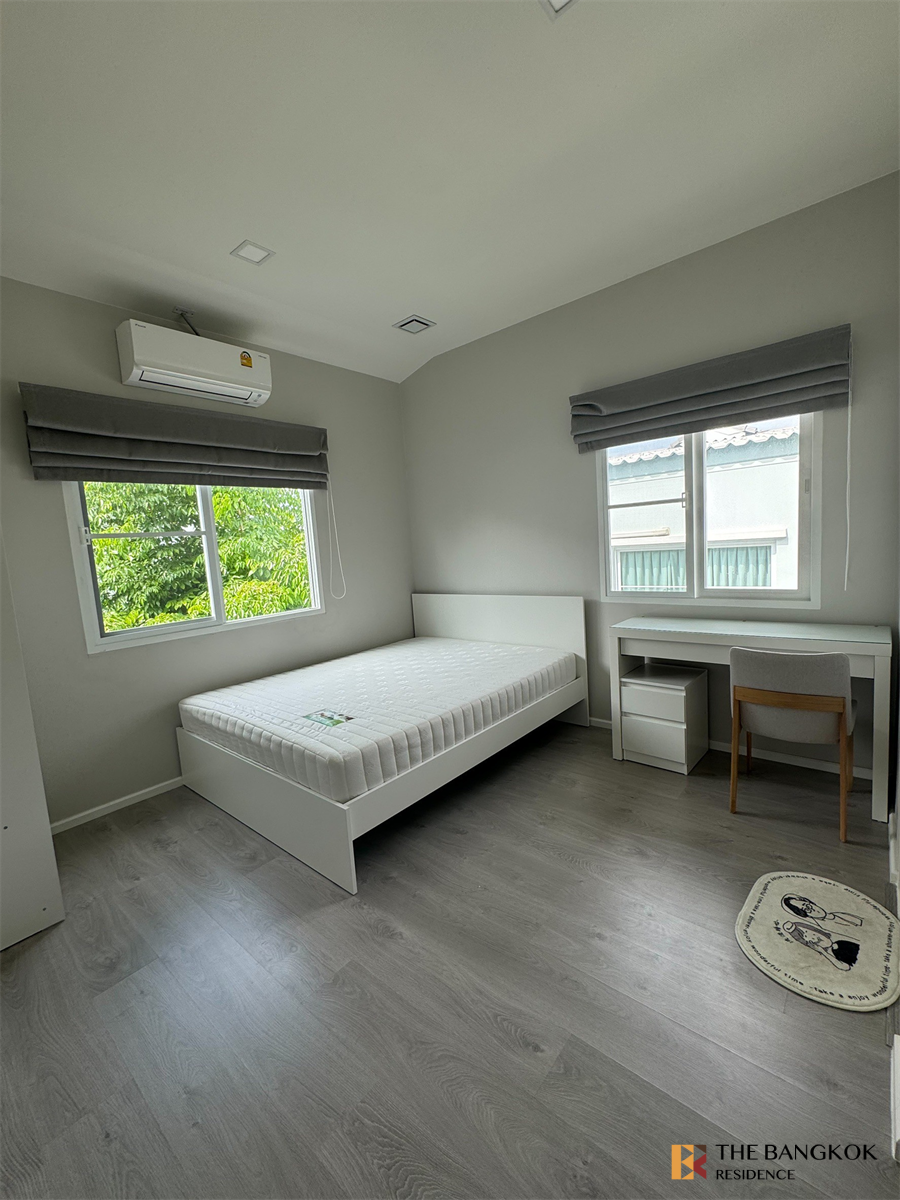 บ้านเดี่ยวหรู โครงการใหม่พึ่งสร้าง โครงการในย่านบางนา บ้านอยู่ริมถนนเมน ลมเข้าทั้งวัน หน้าบ้านหันทางทิศใต้ทำให้อยู่สบาย ไม่แออัด อยู่เฟส แรกของโครงการ ใกล้สวนส่วนกลาง ฟิตเนส และสระว่ายน้ำขนาดใหญ่ มีความเป็นธรรมชาติ