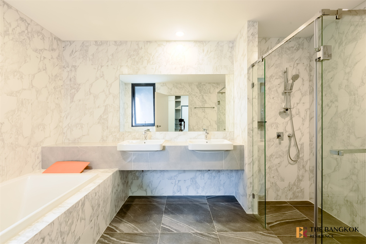 • ห้องน้ำหินอ่อน พร้อม อ่างอาบน้ำและ Rain Shower