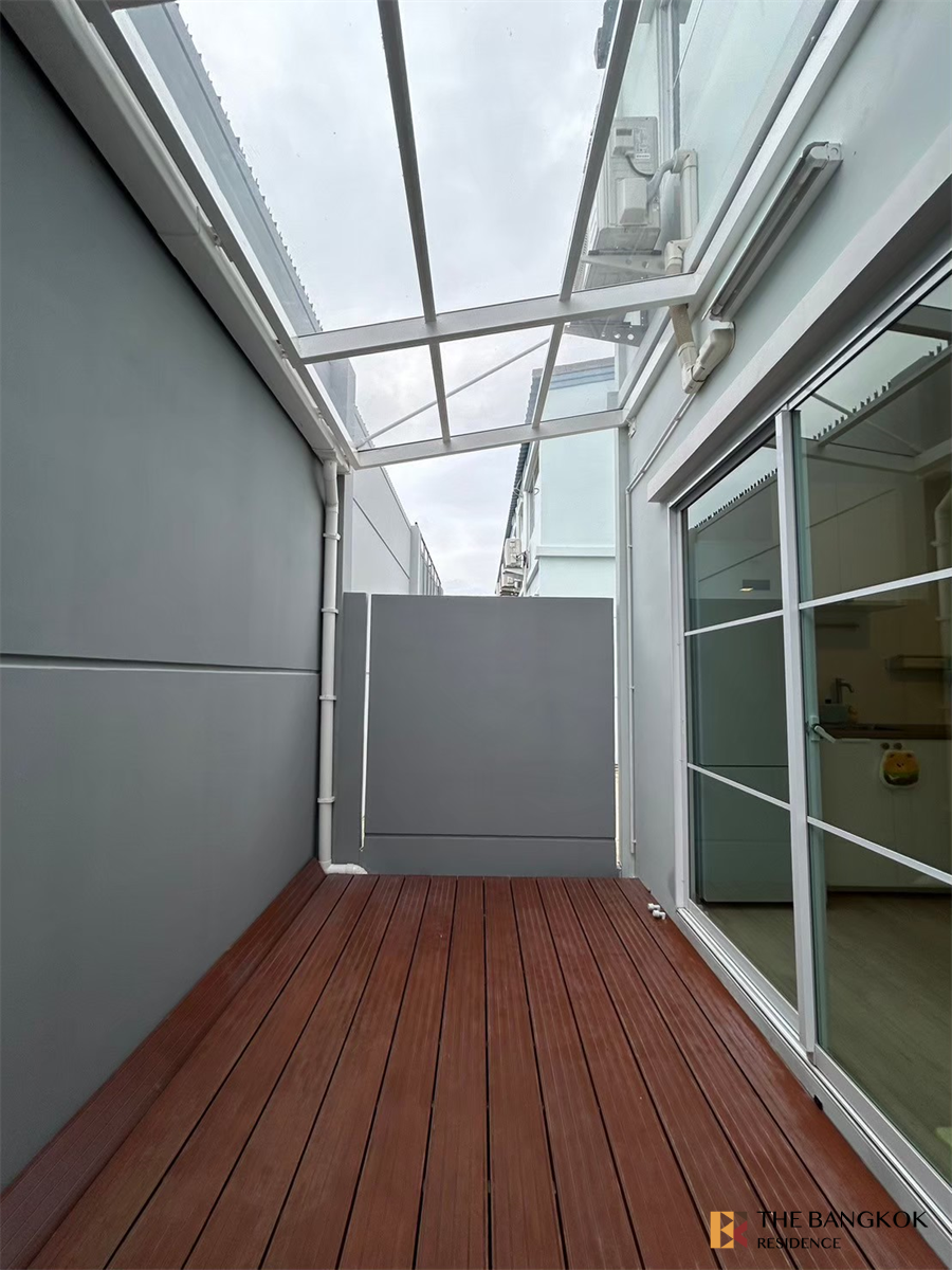 หลังบ้านตกแต่งใหม่ทำพื้นไม้ + หลังคาใส
