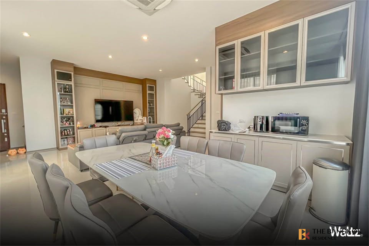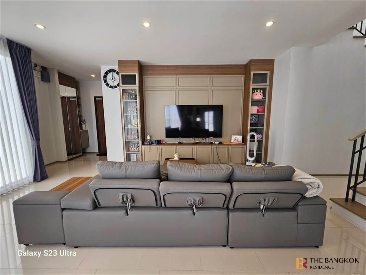 ถ.ศรีนครินทร์-ร่มเกล้า ติดริมถนนใหญ่ขับเข้ามาเพียง 700 เมตรเท่านั้น 5 ห้องนอน 6 ห้องน้ำ ห้องครัวแบบปิด ห้องทานอาหารและห้องนั่งเล่น ห้องซักรีด ห้องเก็บของพร้อมเฟอร์ฯ
