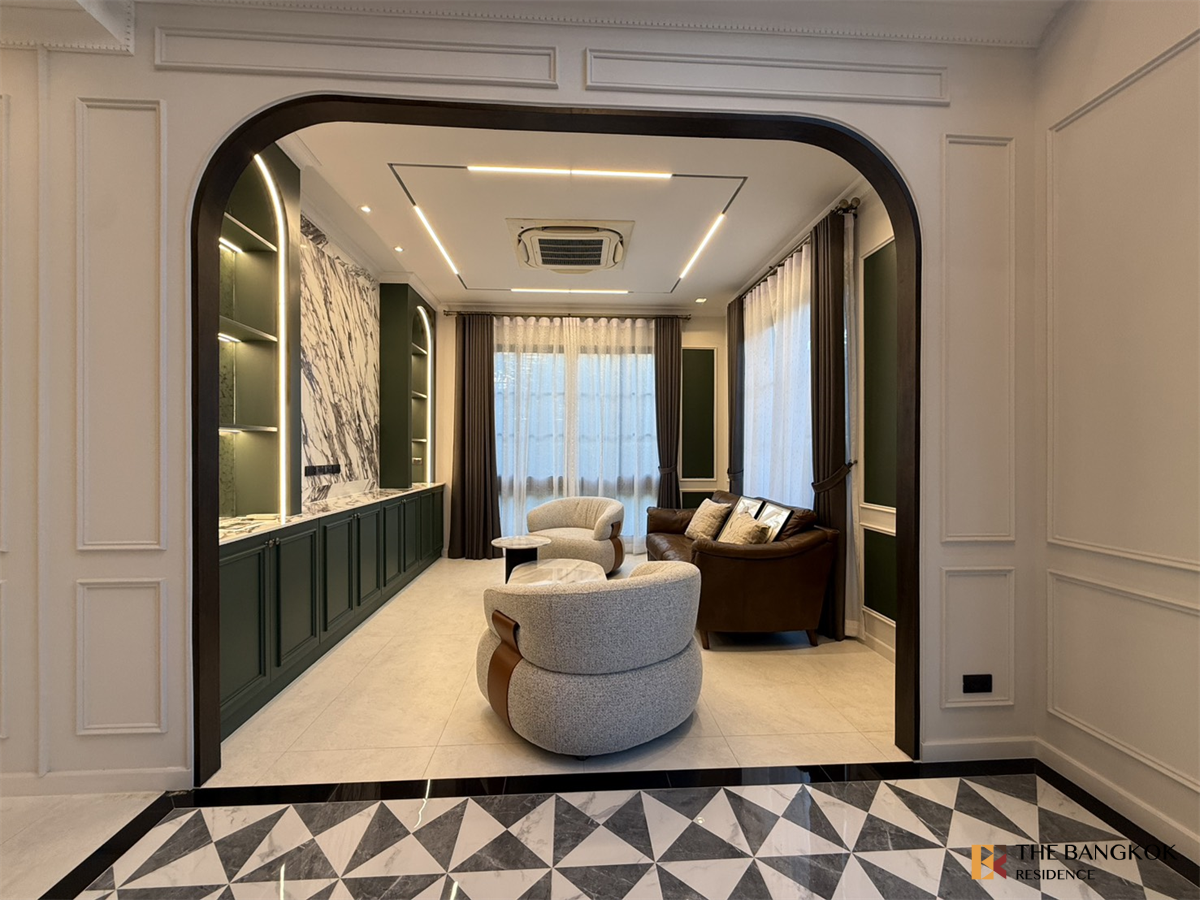 เศรษฐสิริ บางนา กม.10 บ้านเดี่ยวหรูจากแสนสิริ แรงบรรดาลใจ บ้านเดี่ยวสไตล์ Georgian ที่ส่งเสริมภาพของชีวิตที่ภาคภูมิ พร้อมการออกแบบฟังก์ชันให้ลงตัวกับการอยู่อาศัย รูปแบบ 4 ห้องนอน 5 ห้องน้ำ บนพื้นที่ใช้สอย 310 ตารางเมตร บ้านใหม่ไม่เคยมีคนอยู่ ไม่ได้ตกแต่ง พร้อมเครื่องปรับอากาศทุกห้อง เป็น type Austen แปลงเดียวในโครงการที่เป็นแปลงมุม หน้าบ้านไม่ชนใคร ทิศเหนือ อากาศไม่ร้อนตลอดทั้งปี อยู่ท่ามกลางสภาพแวดล้อมที่ดี และทำเลที่สะดวกสบาย บางนา-ตราด กม.10 พร้อมสิ่งอำนวยความสะดวกภายในโครงการที่ครบครันเช่น สระว่ายน้ำ ฟิตเนส ที่จอดรถ ระบบรักษาความปลอดภัย 24 ชั่วโมง CCTV และอื่นๆ