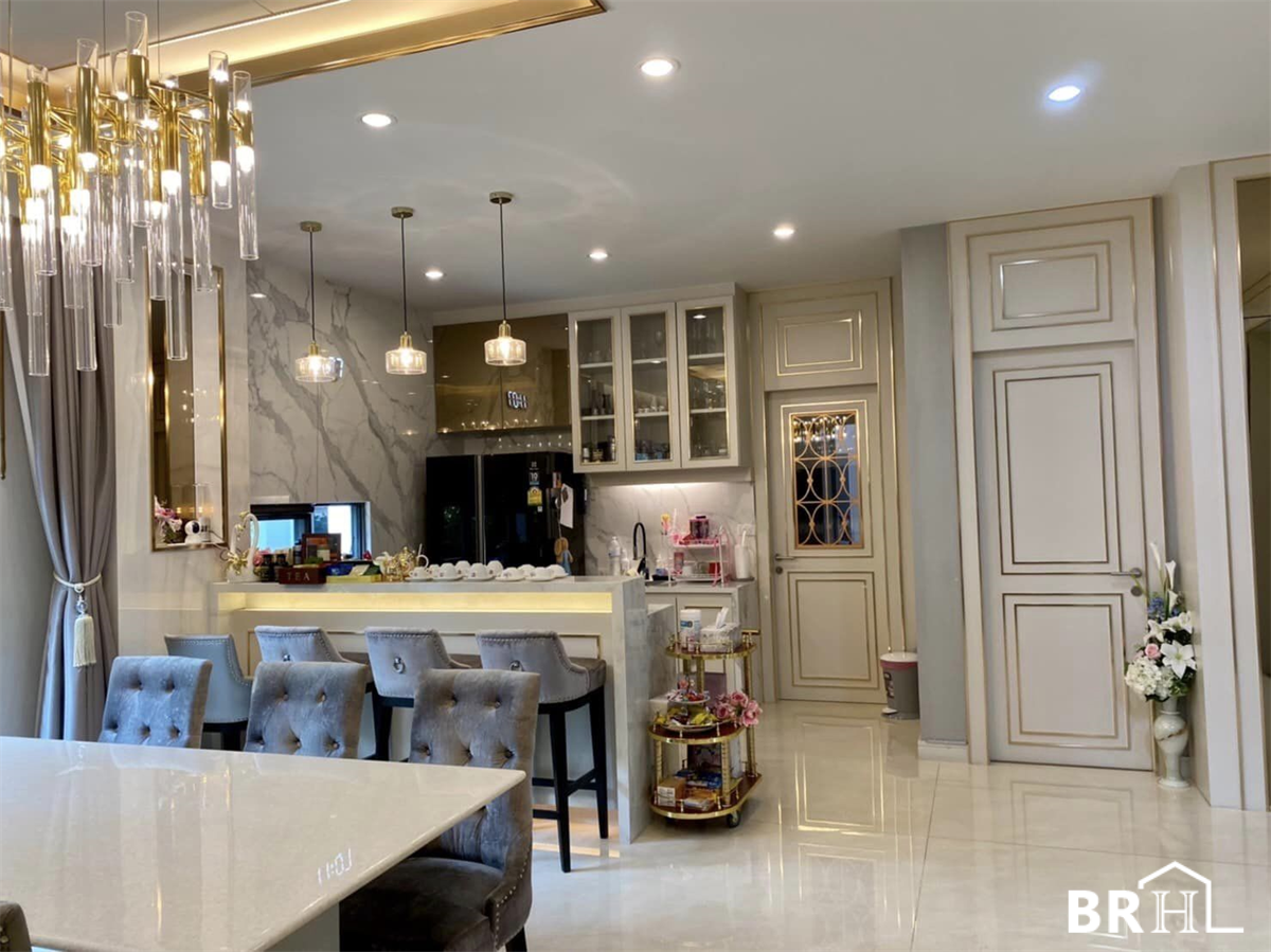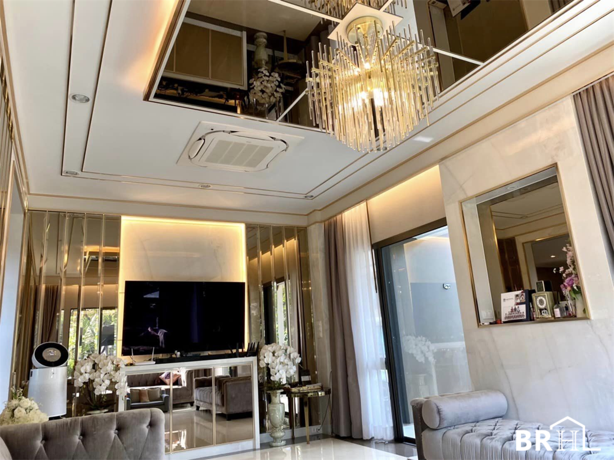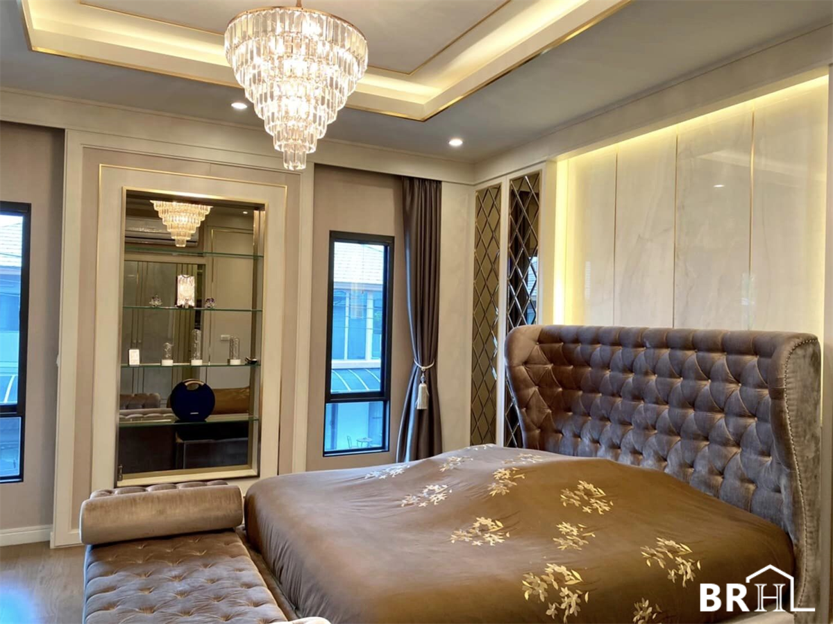 Burasiri Phatthanakan 独栋别墅采用现代奢华风格装饰,各处均采用进口大理石。实用面积399平方米,4间卧室,5间浴室,1间办公室,祈祷室,女仆房,可停放4辆车的停车场,土地面积150平方米。