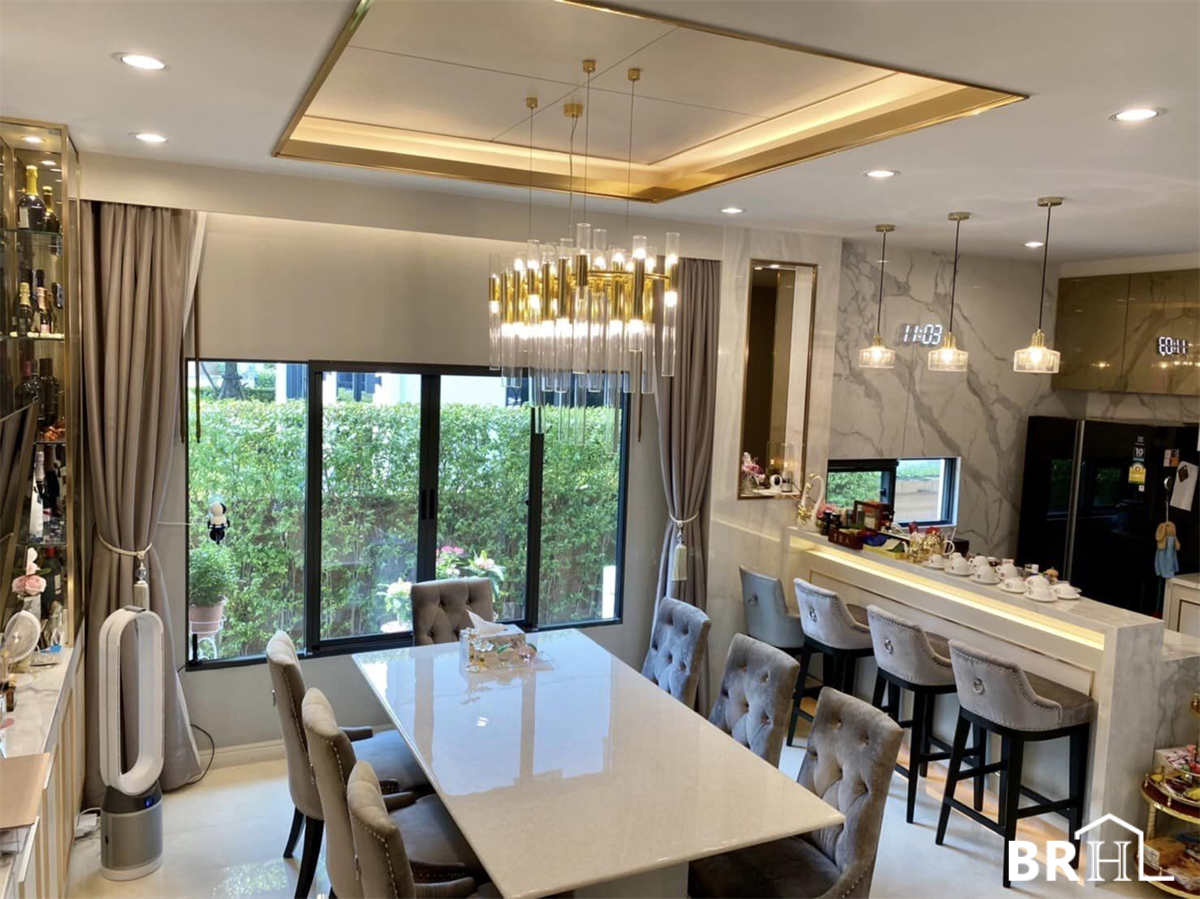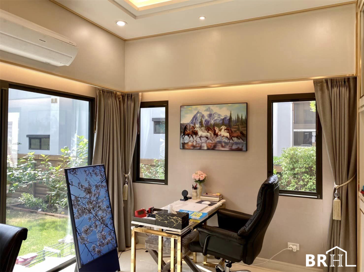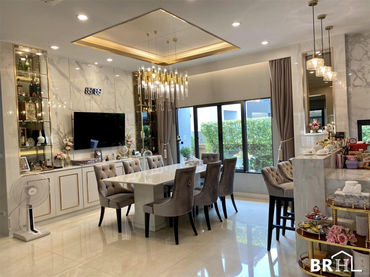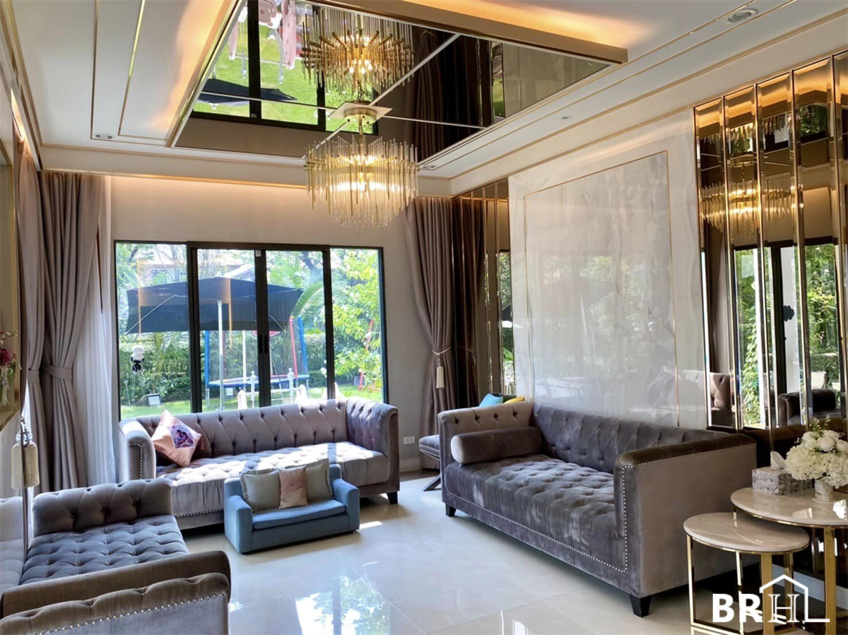Burasiri Phatthanakan 独栋别墅采用现代奢华风格装饰,各处均采用进口大理石。实用面积399平方米,4间卧室,5间浴室,1间办公室,祈祷室,女仆房,可停放4辆车的停车场,土地面积150平方米。