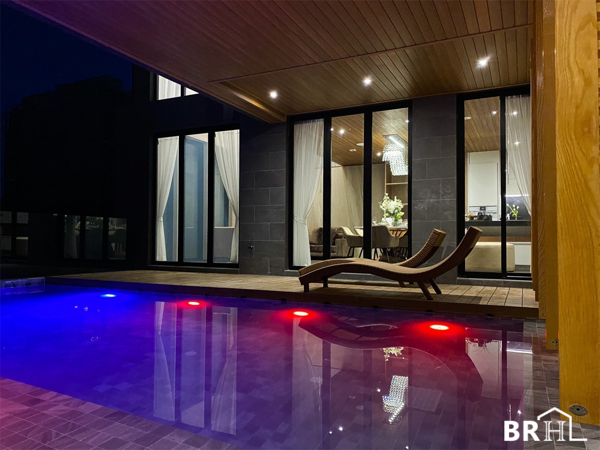 项目一手独立屋,位置好,靠近Suan Luang Rama 9和Seacon Square商场。 重视隐私,有保安24小时看管电线。 面积:5间卧室、7间浴室、4个停车位、按摩浴缸、内置厨房、二楼私人游泳池。 实用面积720平方米