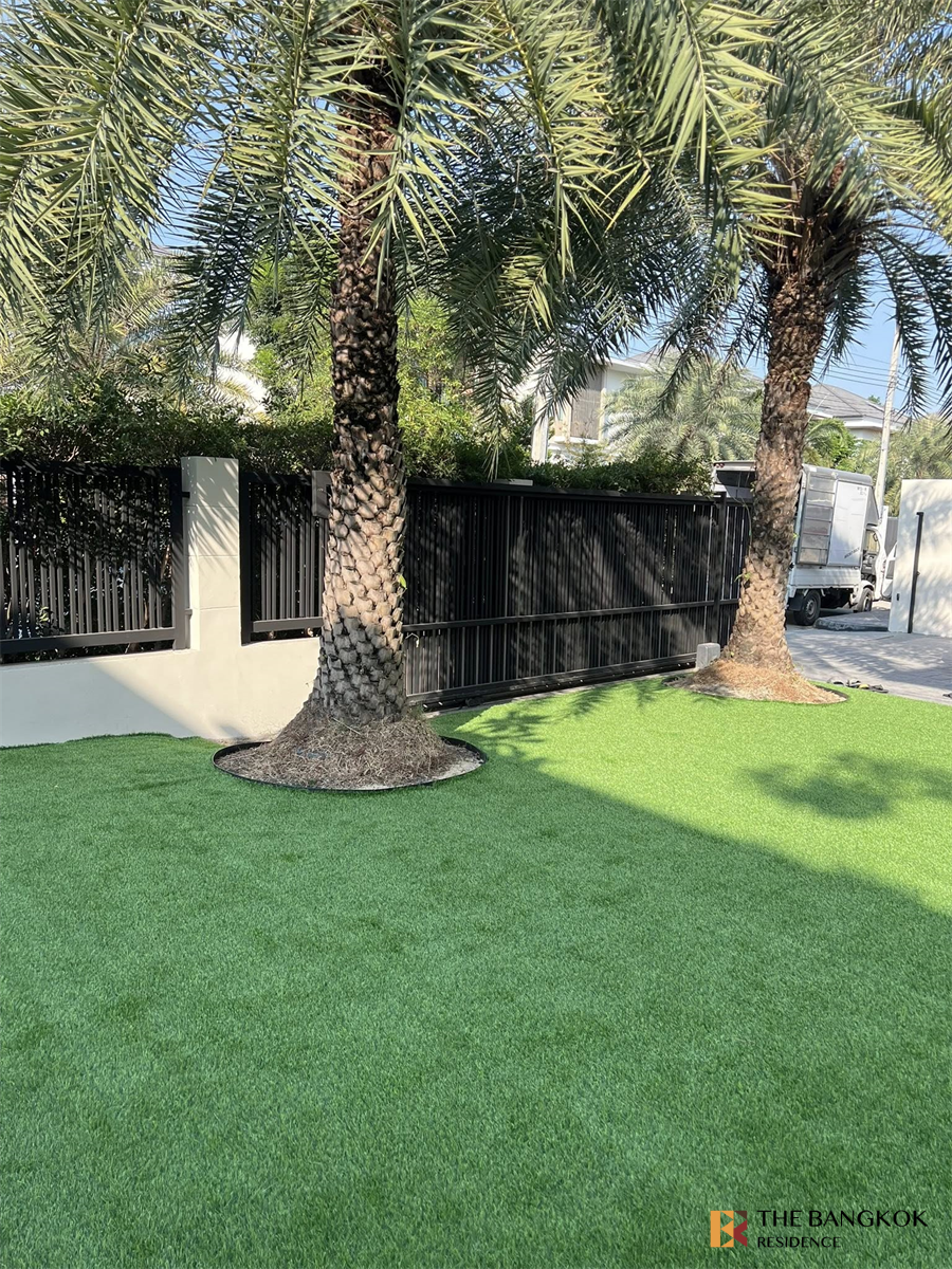 出租房屋,豪华项目完美杰作Sukhumvit77,三期,面积107.7平方米,实用面积250平方米。 2层独立屋,房子周围有人造草坪。无需厌倦照顾花园。 - 1间客厅+65英寸智能电视 - L型沙发,尺寸3.2米 - 底楼 1 间多功能室 可改造成卧室或办公室。 - 楼上有3间卧室,家具齐全,每个房间都有自己的浴室。 -带烤箱的内置厨房 - 2台冰箱、前置式洗衣机 - 2米长的合成石餐桌,配有8把椅子 租金 170,000฿/月 欢迎所有国籍。 (保修3个月+提前1个月)
