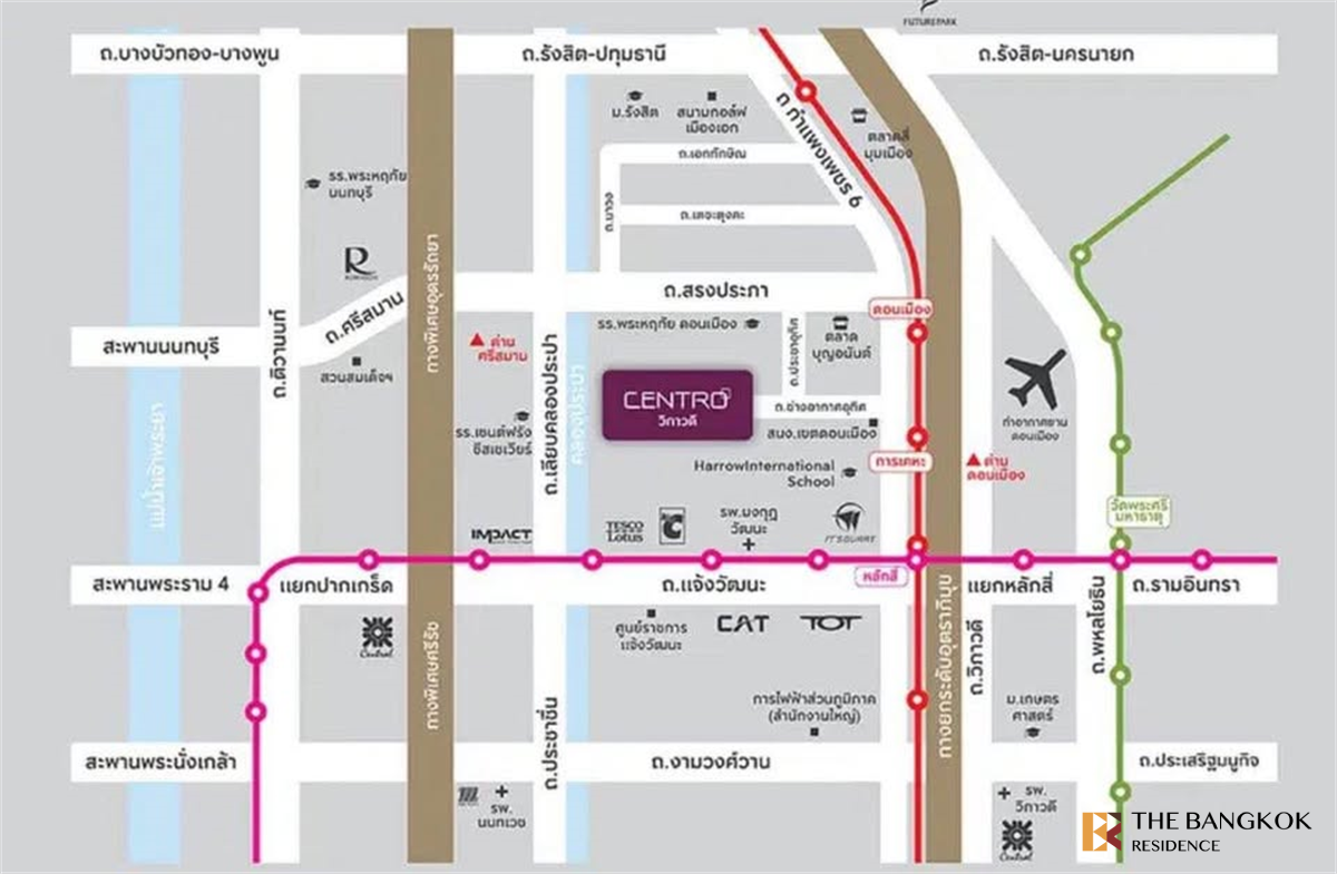 美联社的 Centro Vibhavadi,位于 Vibhavadi 位置的 2 层独立住宅。位于 Soi Chang Akat Uthit 15/1(Chaengwattana 路和 Songprapha 路之间),2 公里。从 Vibhavadi 路(出境侧)出发,靠近哈罗国际学校、廊曼机场。深红线Don Mueang站3.2公里。里面有一个公共区域+花园,面积超过2莱,共有4种房屋风格。价格范围从8.99-1200万泰铢起。