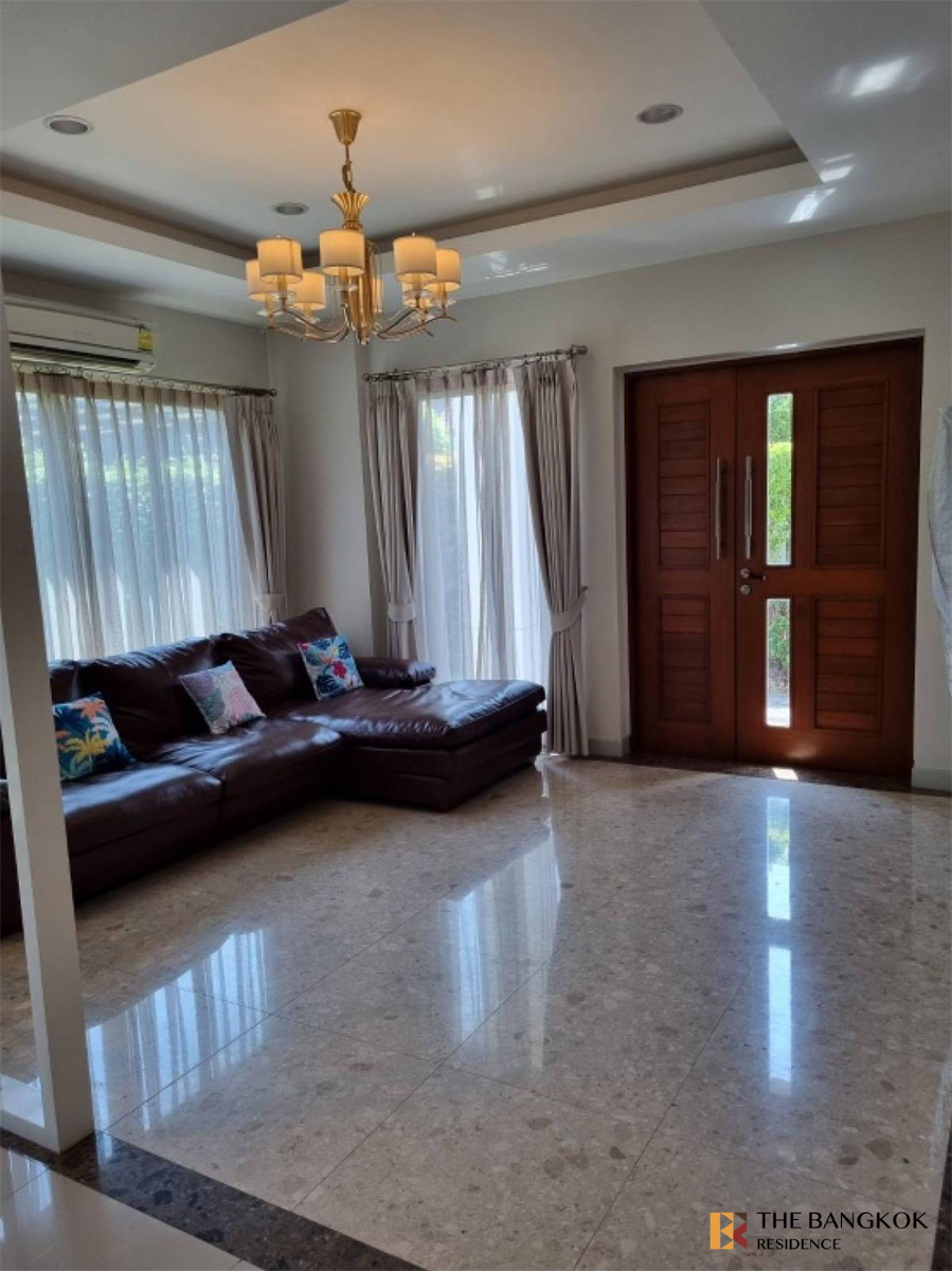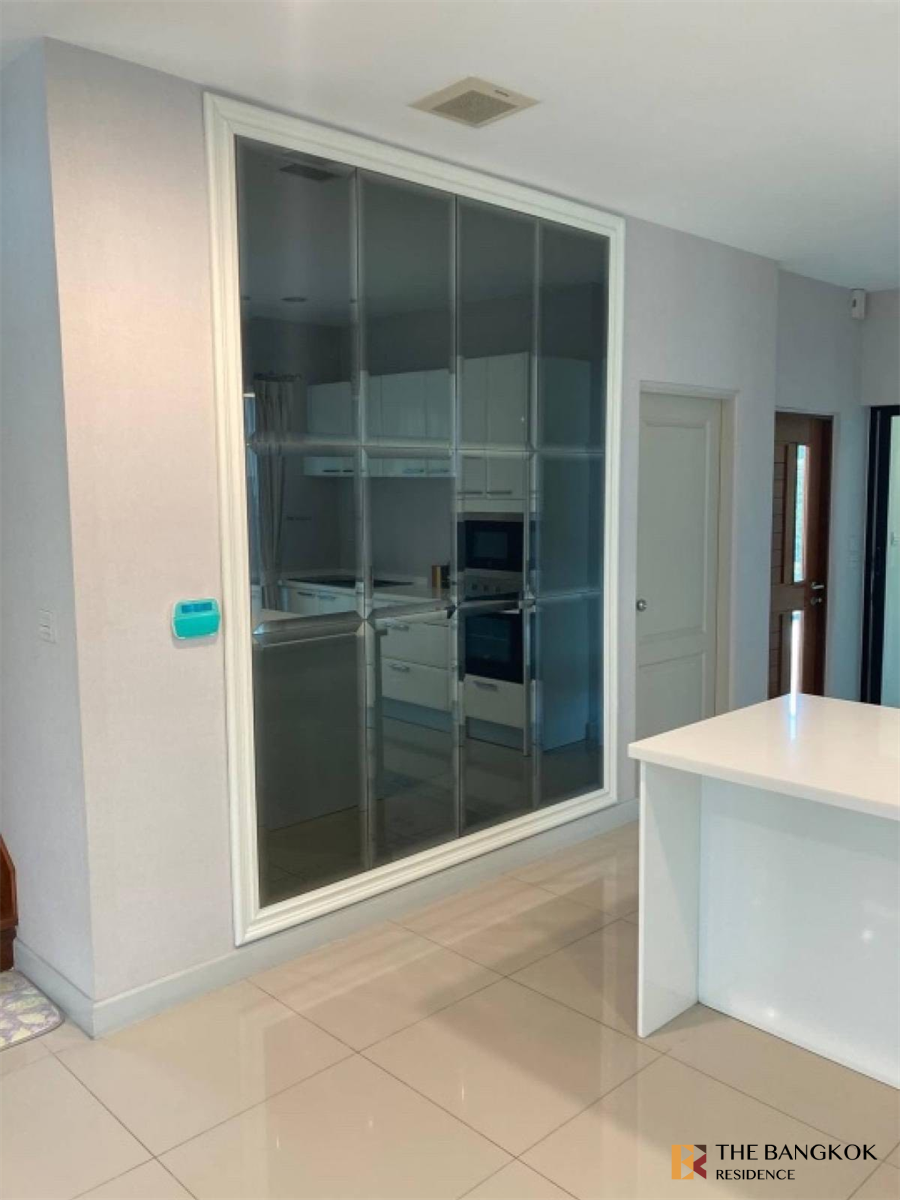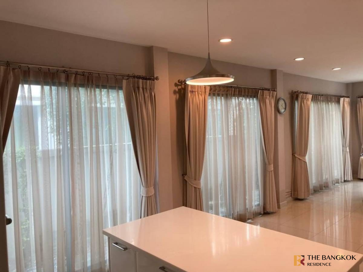 出租>>豪华独立屋,豪华级别,全新,非常漂亮。已装修完毕,可随时入住 底楼的房间每个角落均可欣赏花园美景。店主自己卖的。曼谷大大道 Ratchaphruek - Rattanathibet 项目。近中环西大,面积86.3平方米,实用面积315平方米,2层,4房4卫,有独立佣人房。